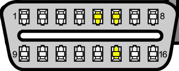 OBD stekker: pin 6 en 14 zijn het CAN-signaal.